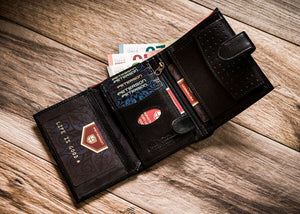 Šis elegantais melnais maks ir paredzēts, lai ērti glabātu visas jūsu ikdienas kartes, dokumentus un skaidru naudu. Iekšpuse ir izklāta ar logotipa oderi, kas aizsargā īsto ādu no bojājumiem.