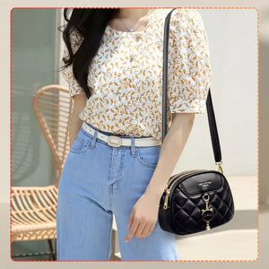 Šī elegantā melnā rokassoma labi sader ar dažādiem stiliem un ir praktiska izvēle ikdienas lietošanai.