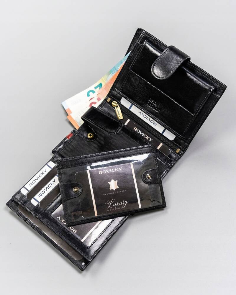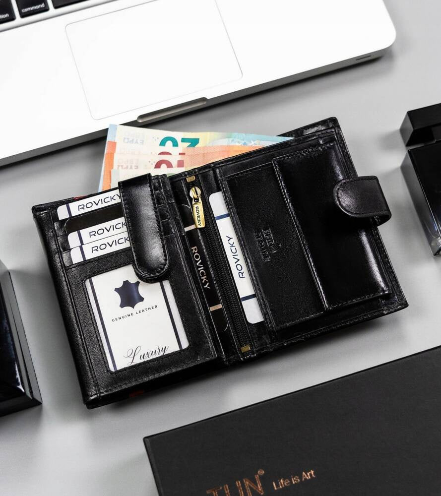 Šis elegantais vīriešu maks no Rovicky ir izgatavots no augstas kvalitātes īstas ādas, nodrošinot izturību un stilīgu izskatu.