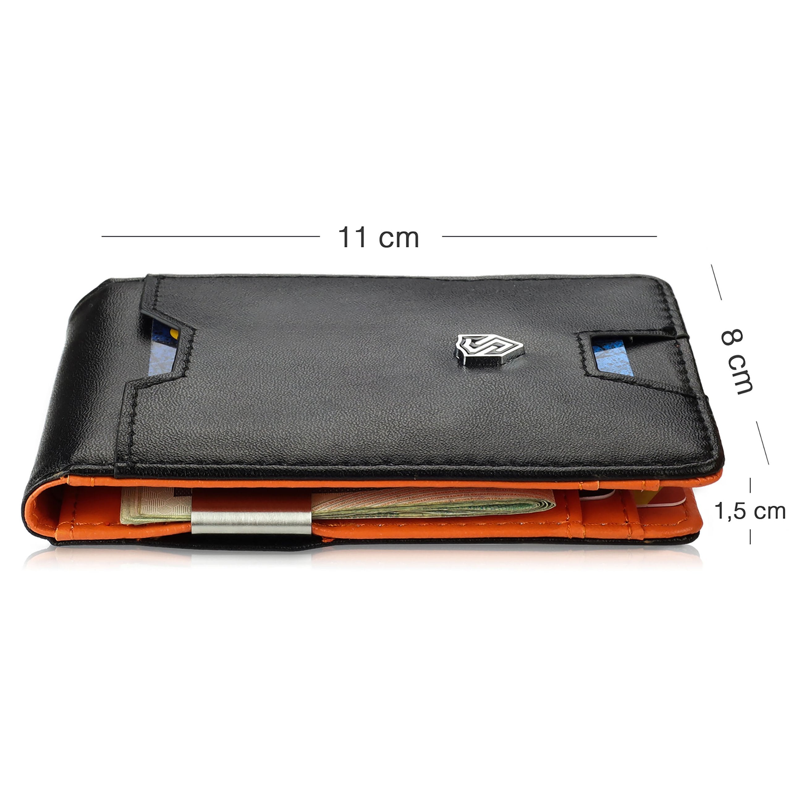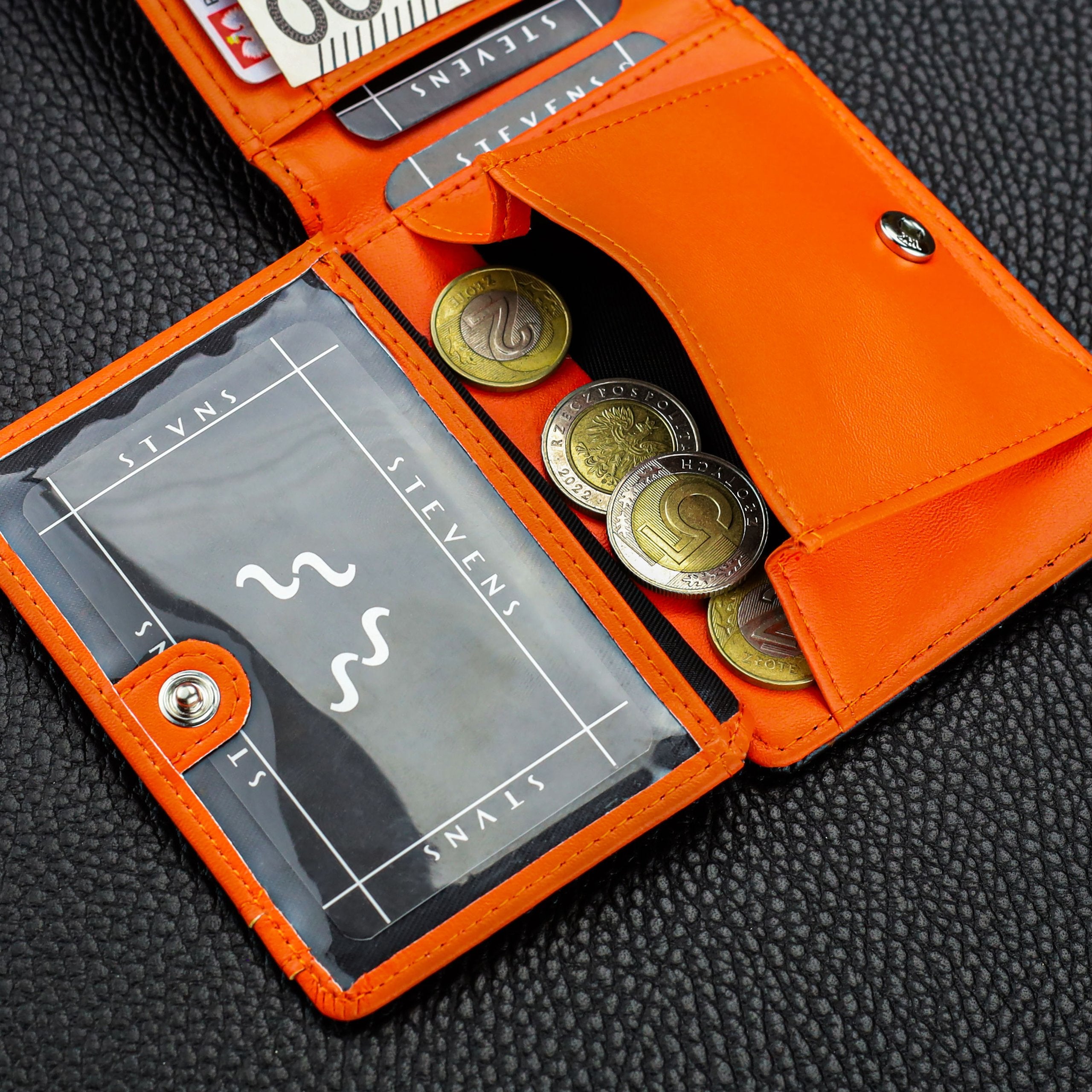 STEVENS® SLIM plānais maks ir paredzēts tiem, kas vēlas izvairīties no apjomīgiem makiem un apjomīgām kabatām. Šis modelis ir ārkārtīgi plāns, tomēr ietilpīgs, ar pietiekami daudz vietas personas apliecībai, autovadītāja apliecībai un kredītkartēm. Pateicoties viedajam karšu, naudas klipša un monētu kabatas izvietojumam, maks paliek kompakts un sakārtots.