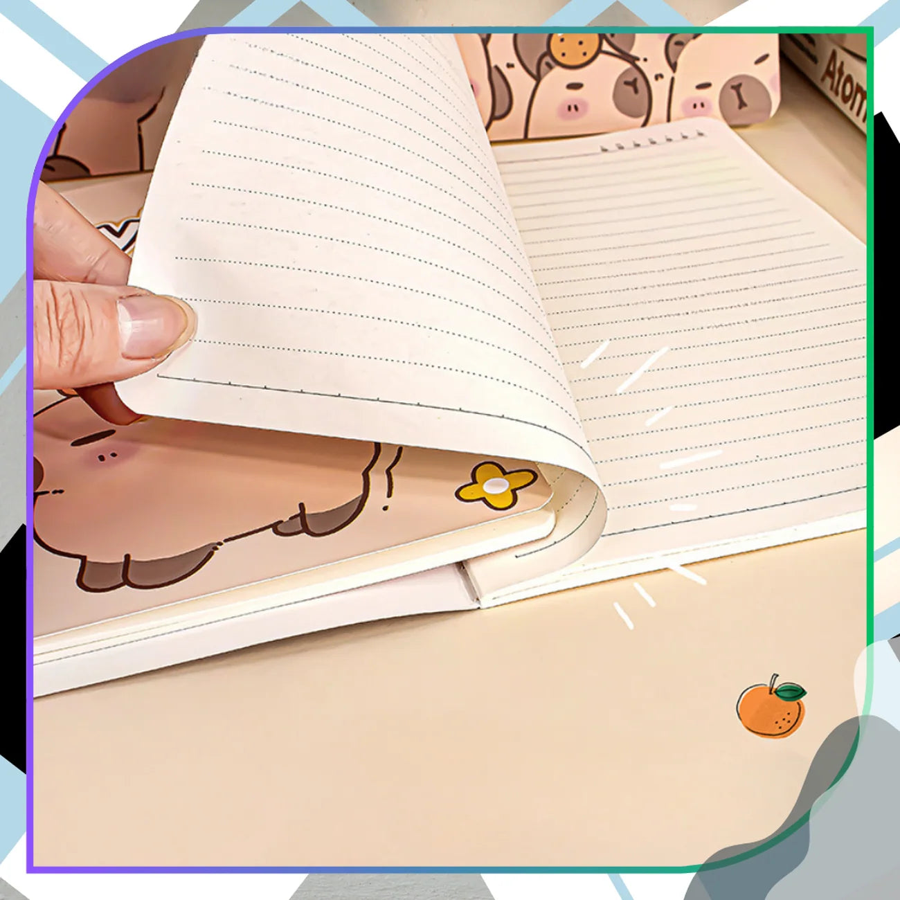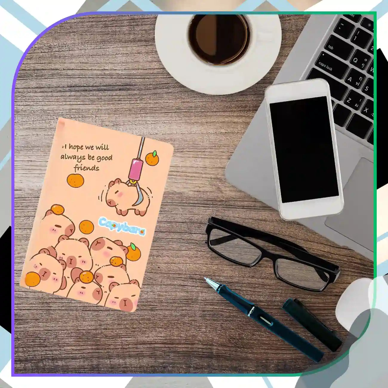 Piedāvājam jaunu 4 piezīmju grāmatiņu komplektu ar kapibarām, kas apbur ar savu jauko, multfilmas stila dizainu un augsto kvalitāti. Katras piezīmju grāmatiņas izmērs komplektā ir 14 x 21 cm, un tai ir 60 līnijotas lapas, padarot to ideāli piemērotu ikdienas piezīmēm, plāniem, zīmējumiem vai dienasgrāmatas vešanai.