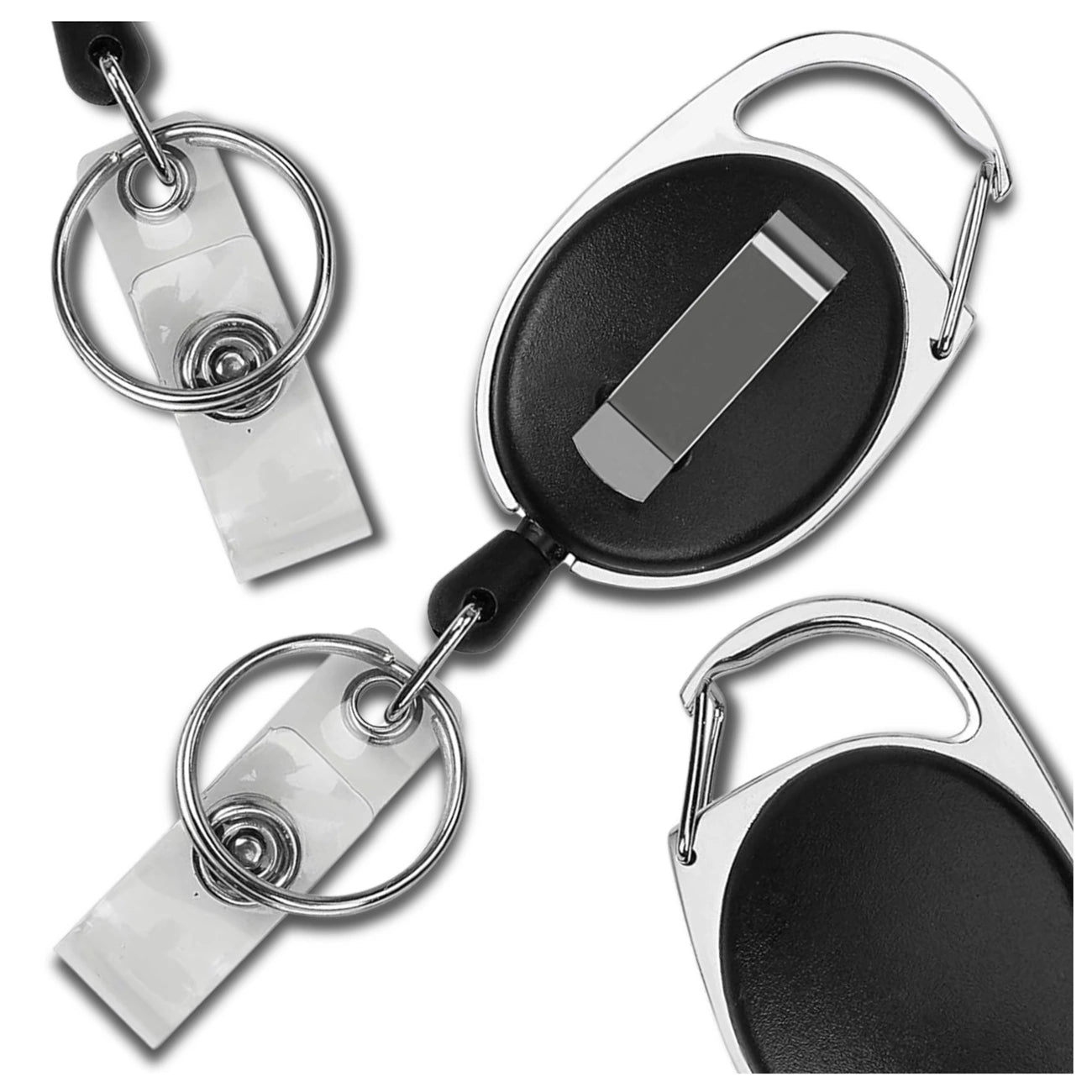 Krāsa un unikālas īpašības: Melns dizains ar 360° rotējošu turētāju nodrošina kustību brīvību. Elastīgā aukla automātiski atgriežas pie ķermeņa papildu ērtībām.