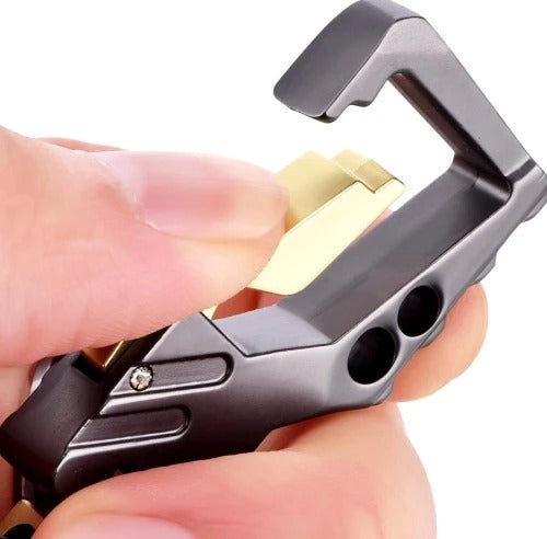 - Ērta karabīnes fiksācija: Atsperes mehānisms ļauj to viegli piestiprināt pie atslēgām vai citiem priekšmetiem.