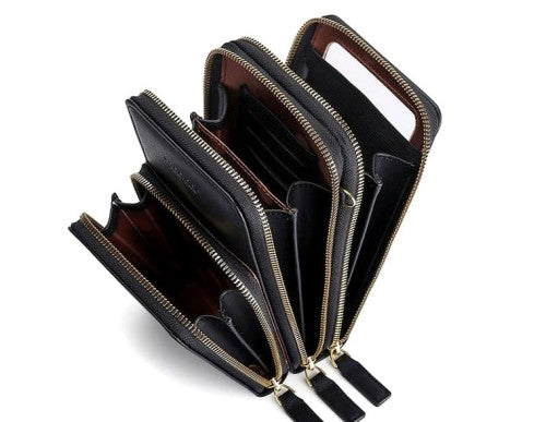 * Nodalījumā ir kabata ar rāvējslēdzēju un 6 kabatas kredītkartēm vai personu apliecinošiem dokumentiem, un tajā var ērti ievietot tālruni un piezīmes.
