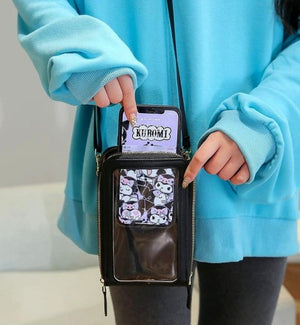 * Pirmais nodalījums ir aiztaisāms ar rāvējslēdzēju. Ārpusē ir caurspīdīgs logs, caur kuru var vadīt tālruni, neizņemot to no somas.