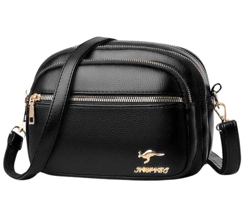 Sieviešu ādas rokassoma - ietilpīga, ar zelta krāsas detaļām, regulējama siksna