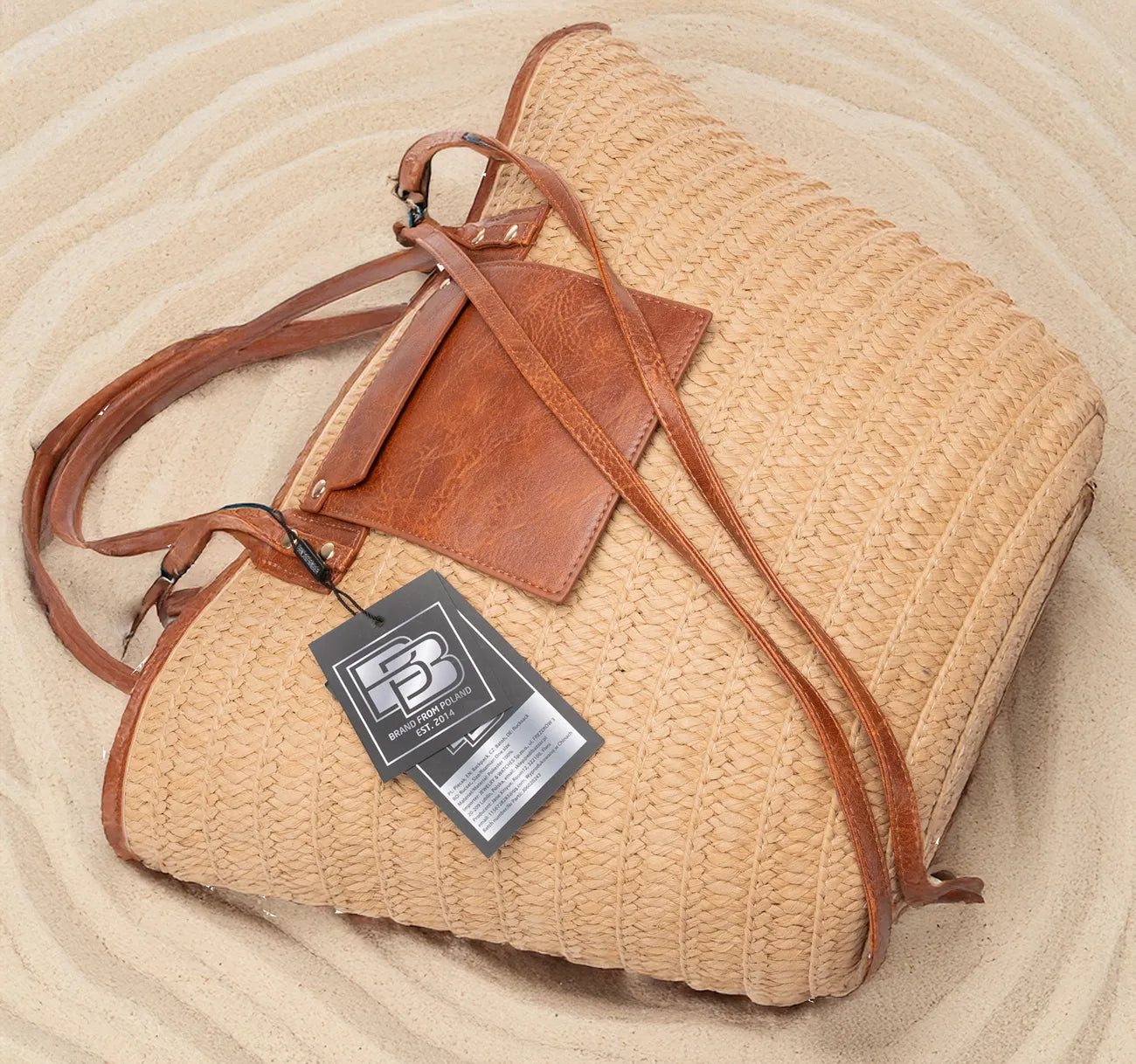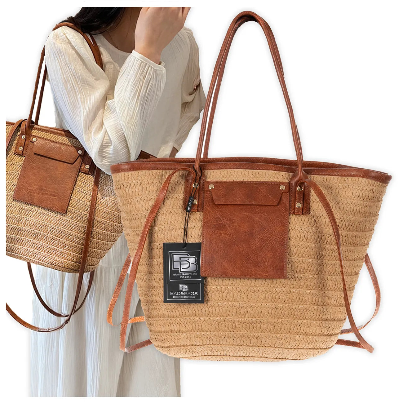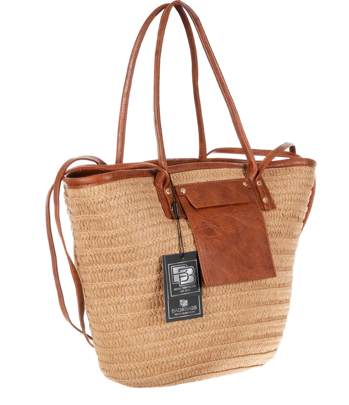 Šī elegantā un praktiskā Bad&Bags rokassoma ir lieliska izvēle vasaras sezonai. Izgatavota no augstas kvalitātes austa sintētiska materiāla, tā ir dabīgā/bēšā krāsā ar brūnām detaļām, kas piešķir tai unikālu stilu.