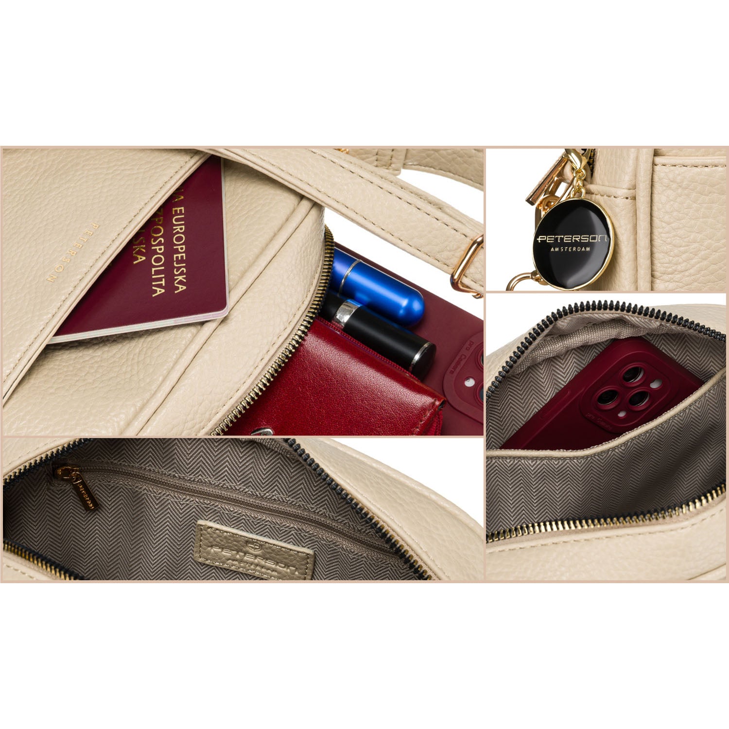 Peterson tumši bēša sieviešu rokassoma no organiskās ādas - stilīga un praktiska izvēle.
