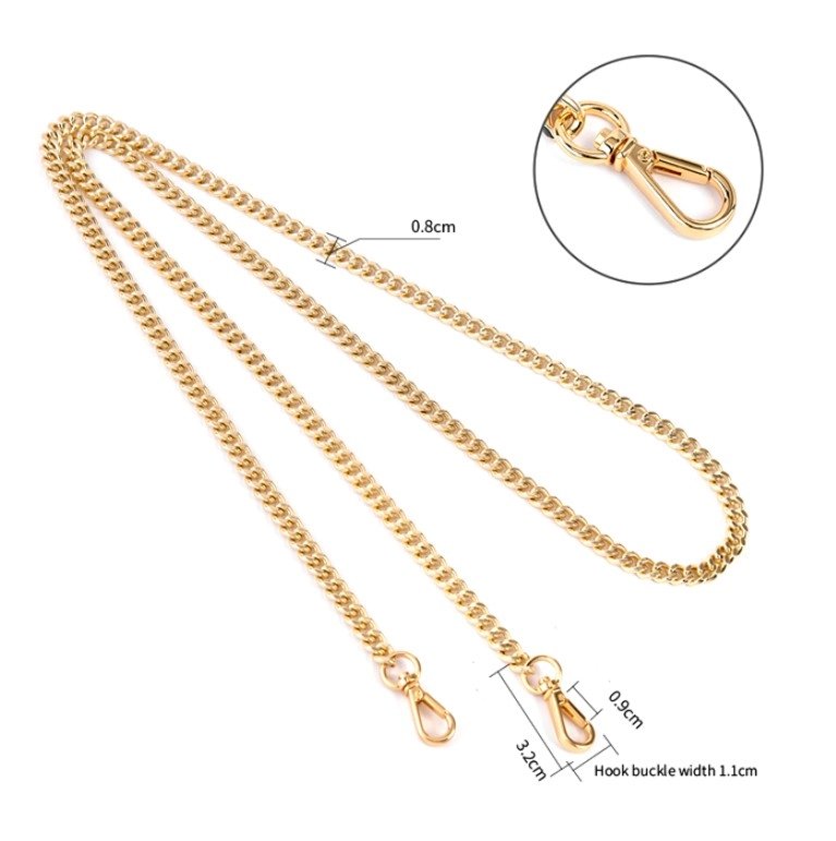 Šī garā metāla ķēdīte ir lieliska izvēle jūsu rokassomai, piešķirot tai ne tikai stilu, bet arī uzticamību.
