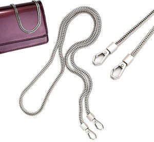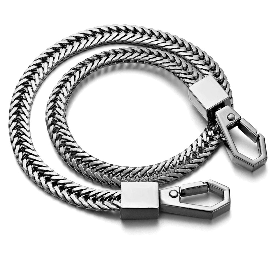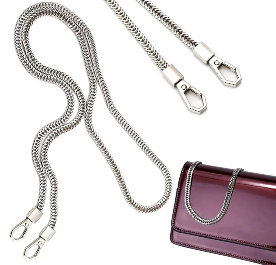 Gara metāla ķēdīte rokassomiņas siksnai — šī ķēdīte ir daudzpusīga un izturīga. Tā ir lieliska izvēle lielākajai daļai rokassomiņu.