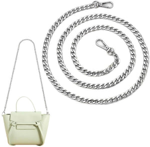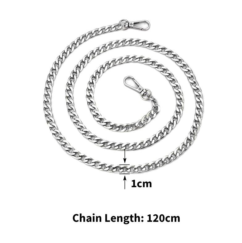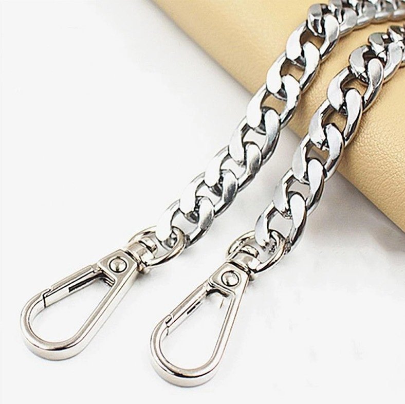 Gara metāla ķēde rokassomas siksnai ir daudzpusīga un izturīga.