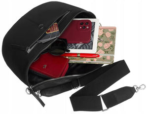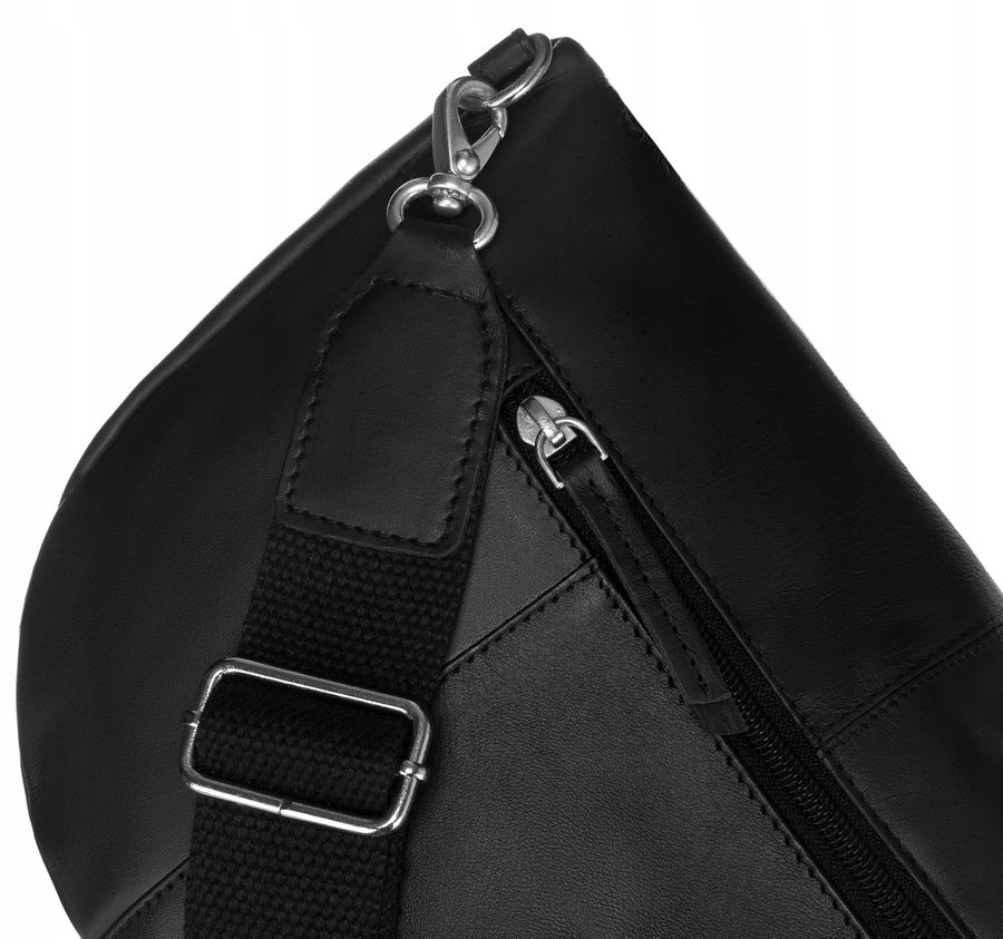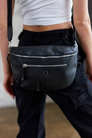 Šī elegantā jostas soma ir izgatavota no augstas kvalitātes īstas ādas, kas nodrošina izturību un stilīgu izskatu. Soma ir klasiskā melnā krāsā, tāpēc to var viegli pieskaņot dažādiem apģērba stiliem.