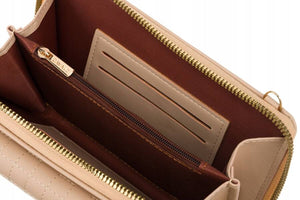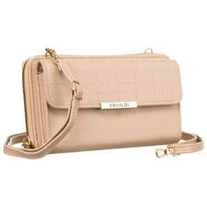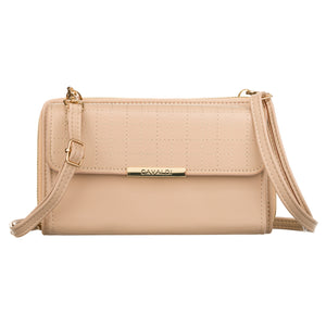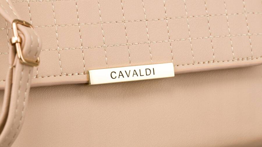 Liela 4U CAVALDI sieviešu rokassoma no organiskās ādas, bēšā krāsā, ar rāvējslēdzēju un ielocēm.