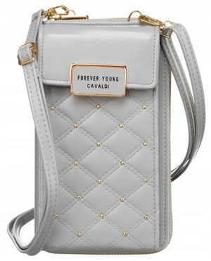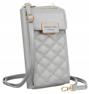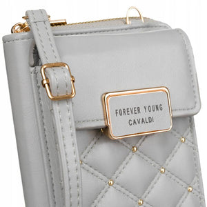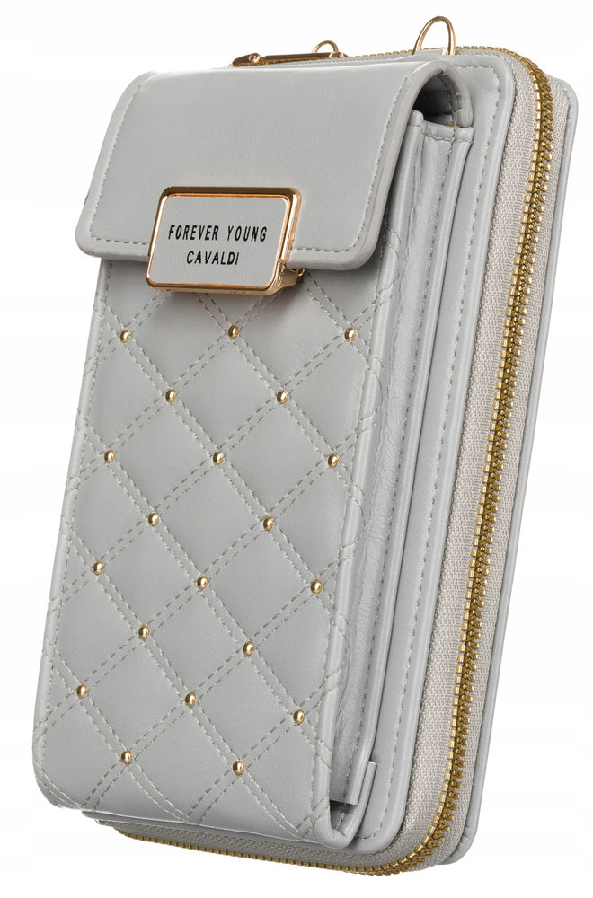 Liela 4U CAVALDI sieviešu pelēka portfelis no eko ādas ar rāvējslēdzēju.