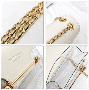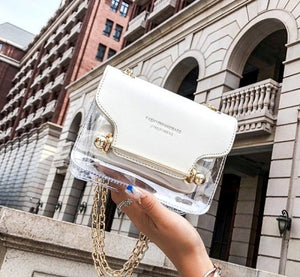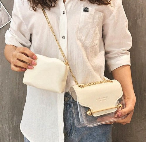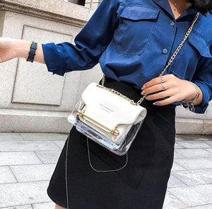Šai rokassomai ir izturīgs apakšējais slānis un ērta magnētiskā aizdare. Iekšpusē atradīsiet nelielu kosmētikas maciņu ar rāvējslēdzēju, ko var viegli noņemt. Rokassoma ir izgatavota no caurspīdīga sintētiska materiāla, bet atloks - no eko ādas.