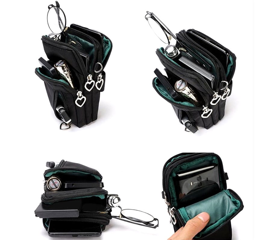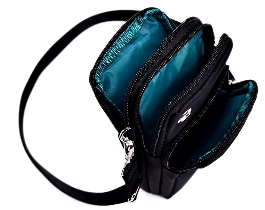 - Galvenās kabatas: Divas galvenās kabatas ir aiztaisāmas ar rāvējslēdzējiem un tajās var ērti ievietot tālruni, maku un citus mazus priekšmetus.
