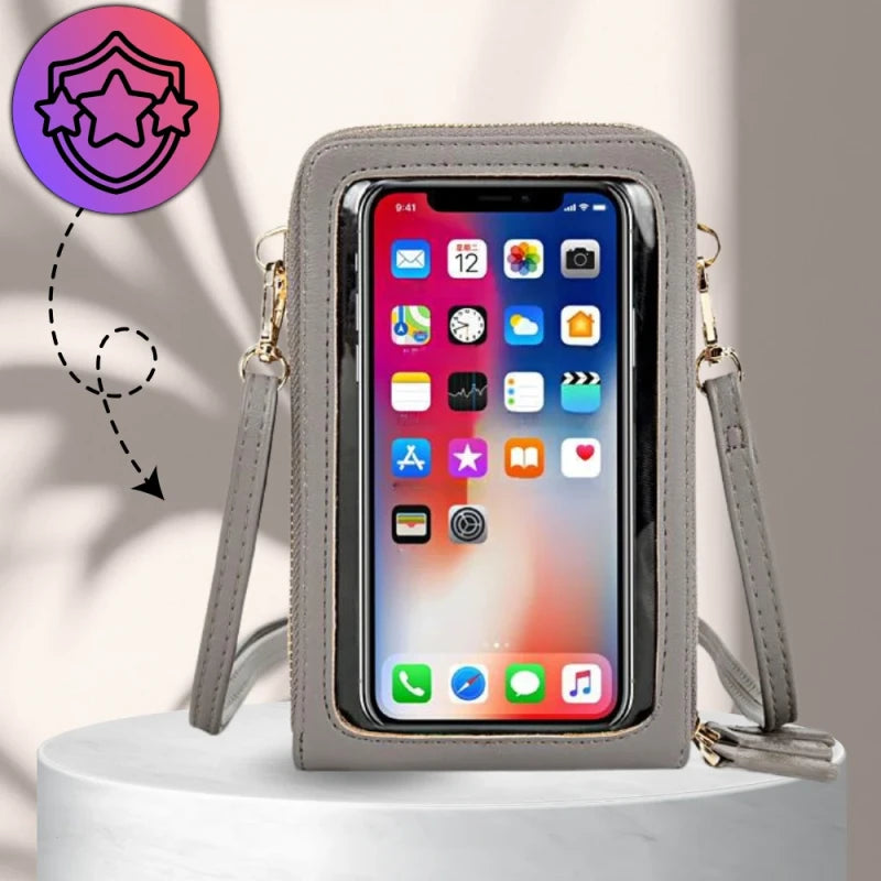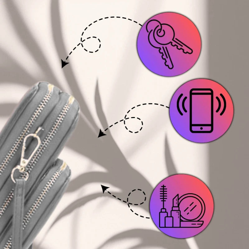• Pirmais nodalījums: ar rāvējslēdzēju, ar papildu nodalījumu iekšpusē. Folijas lodziņš ārpusē ļauj kontrolēt tālruni, neizņemot to no somas.