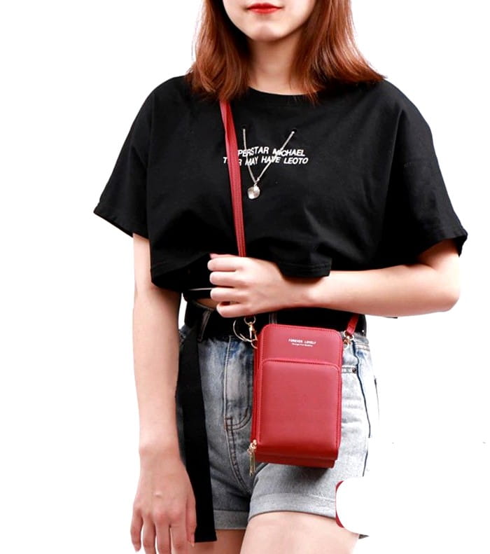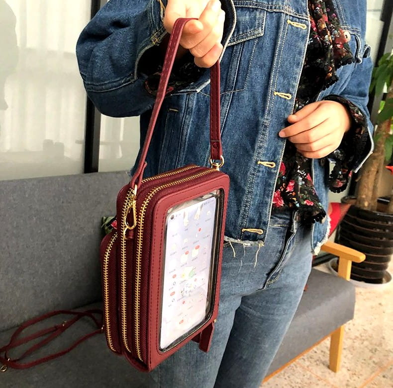 • Pirmais nodalījums: ar rāvējslēdzēju, ar papildu nodalījumu iekšpusē. Ārpusē ir folijas lodziņš, kas ļauj kontrolēt tālruni, neizņemot to no somas.