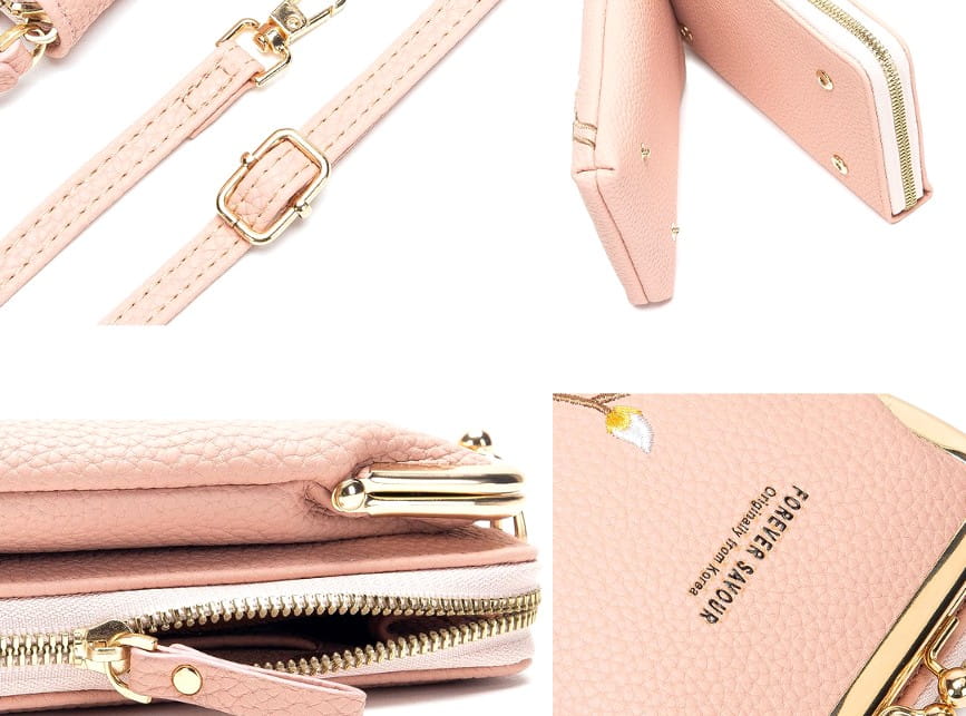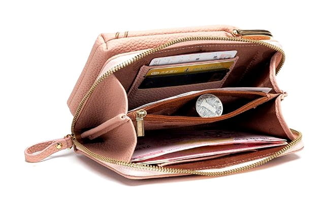 • Iekšējās detaļas: Nodalījums ar rāvējslēdzēju un kabatas 6 kredītkartēm.