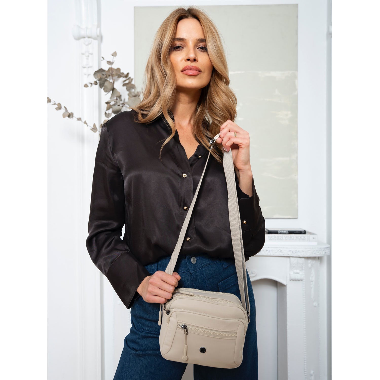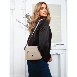 Šī bēšā sieviešu rokassoma, kas izgatavota no poliestera, ir lieliska izvēle ikdienas lietošanai. Tā ir ne tikai stilīga, bet arī funkcionāla, padarot to ideāli piemērotu pilsētas dzīvei.