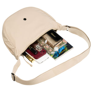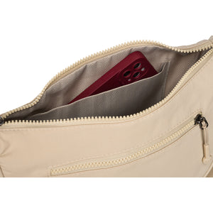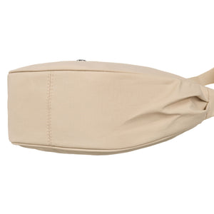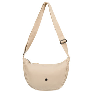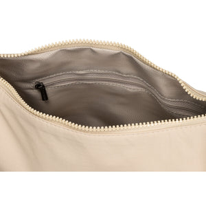 Šī bēšā sieviešu poliestera rokassoma ir lieliska izvēle ikdienas pilsētas stilam. Ar regulējamu siksnu un ērtu rāvējslēdzēju tā nodrošina komfortu un funkcionalitāti. Rokassomai ir viens galvenais nodalījums un trīs kabatas, tostarp ārējā ar rāvējslēdzēju, lai jūs varētu ērti ievietot visas nepieciešamās lietas.