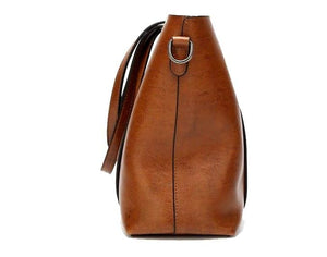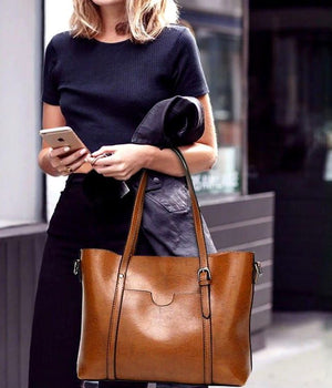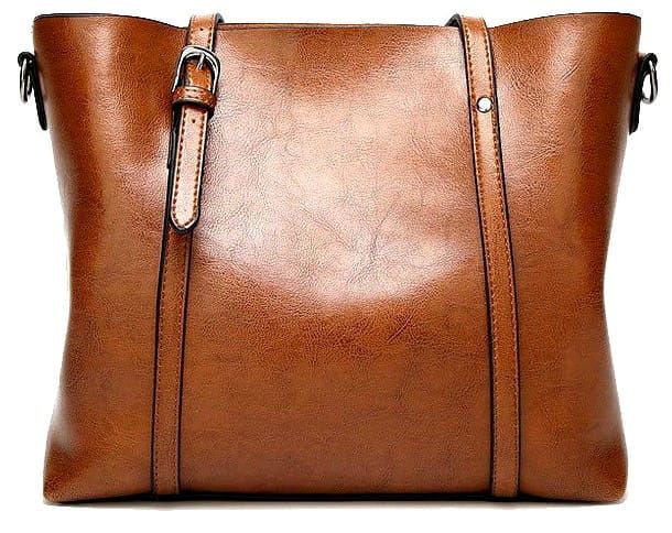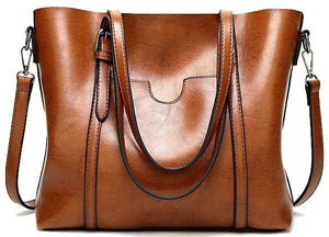 Brūna, ietilpīga sieviešu rokassoma, kas izgatavota no izturīgas organiskās ādas