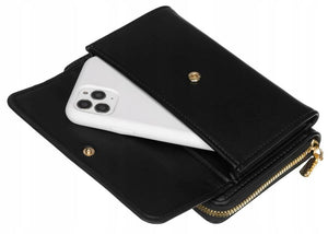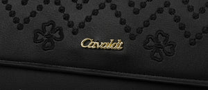 4U CAVALDI sieviešu rokassoma no organiskās ādas, melnā krāsā, ar rāvējslēdzēju un ielocēm.