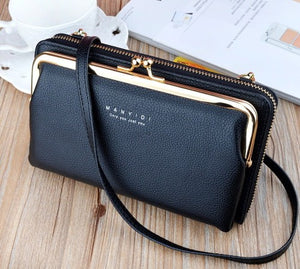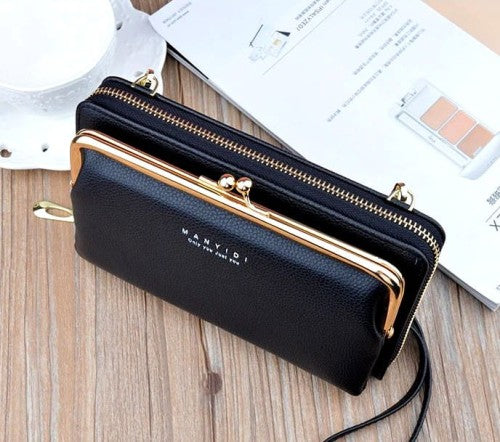 - Iekšpusē atradīsiet nodalījumu ar rāvējslēdzēju un kabatas 6 kredītkartēm.