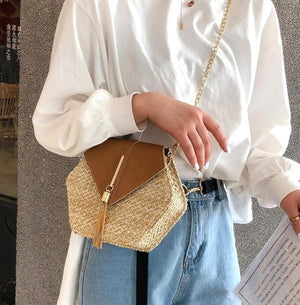 Šī elegantā salmu soma ir lieliska izvēle jebkuram stilam. Tās kompaktais izmērs un funkcionalitāte padara to ērtu nēsāšanai katru dienu.