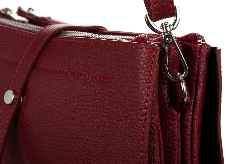 Šī elegantā rokassoma ir izgatavota no augstas kvalitātes īstas ādas, kas nodrošina izturību un stilīgu izskatu. Rokassomas pamatkrāsa ir spilgti sarkana, kas lieliski papildinās jūsu garderobi.