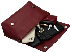 Šī elegantā rokassoma ir izgatavota no augstas kvalitātes īstas ādas, kas nodrošina izturību un stilīgu izskatu. Rokassomas pamatkrāsa ir spilgti sarkana, kas piešķir tai unikalitāti un piesaista uzmanību.