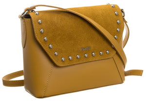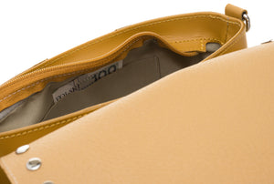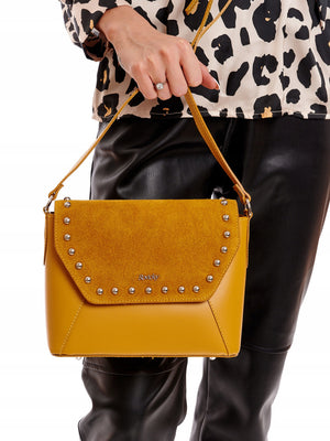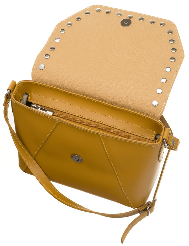 Šī elegantā dzeltenā rokassoma, kas izgatavota no īstas ādas, būs ideāli piemērota pavasara un vasaras sezonai. Tās kompaktais izmērs un funkcionālais dizains ļauj to ērti nēsāt gan uz pleca, gan pāri plecam. Sudraba detaļas un kniedes piešķir tai ekskluzivitāti, bet rāvējslēdzējs zem atloka nodrošina drošību. Tā ir lieliska izvēle gan pilsētas dzīvei, gan ikdienas pasākumiem.