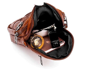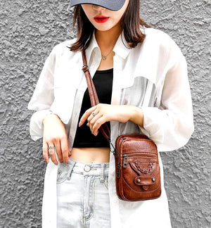 Meklējat kompaktu, stilīgu un funkcionālu rokassomiņu savam viedtālrunim un citām svarīgām lietām? Šī vintage stila sieviešu mini rokassoma-maksa, kas izgatavota no mīkstas organiskās ādas, ir 2-in-1 risinājums, kas noderēs ikvienai sievietei gan ikdienā, gan ārpus tās.