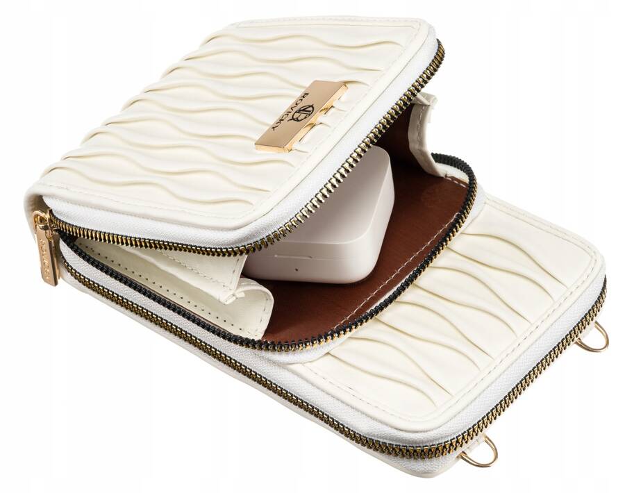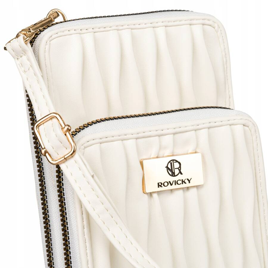 Rovicky sieviešu rokassoma no organiskās ādas, balta, ar rāvējslēdzēju, lieliski piemērota ikdienas lietošanai.