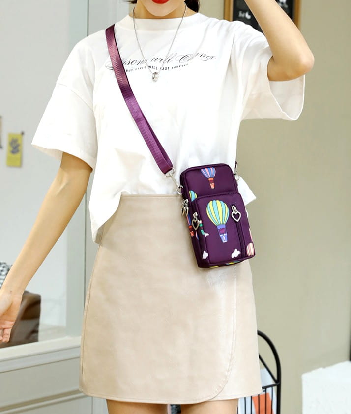 Šī telefona soma ir praktiska un ērta, jo to var nēsāt pār plecu. Tai ir divas siksnas: viena regulējama un otra elastīga, kas nodrošina papildu nēsāšanas iespējas.