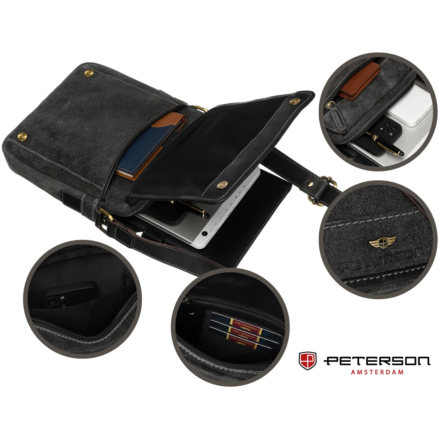 Melnā vīriešu rokassoma Peterson, kas izgatavota no īstas ādas, ir lieliska izvēle ikdienas lietošanai, apvienojot stilu un praktiskumu.