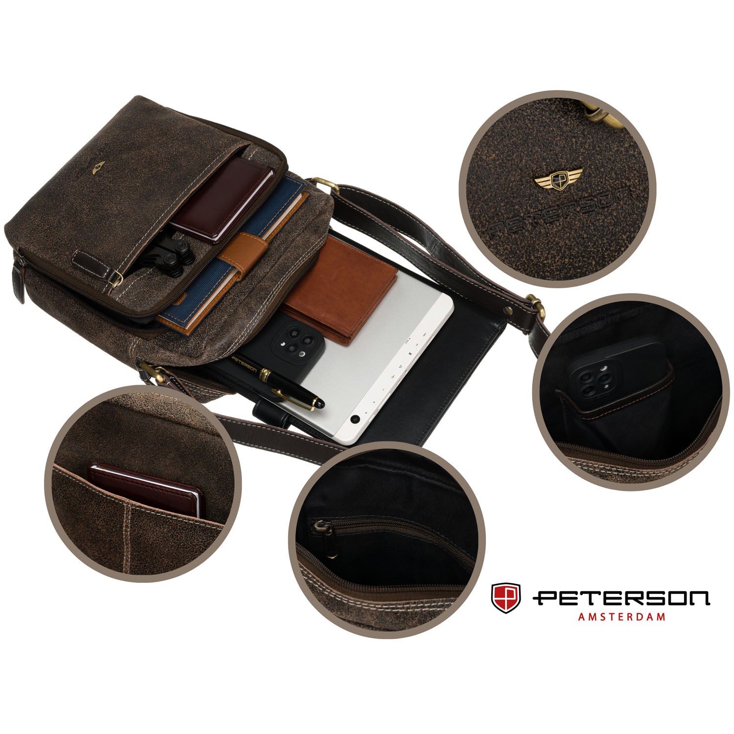 Peterson vīriešu brūnā rokassoma, kas izgatavota no īstas ādas, ir lieliska izvēle ikdienas lietošanai. Šī rokassoma ir ne tikai stilīga, bet arī praktiska.