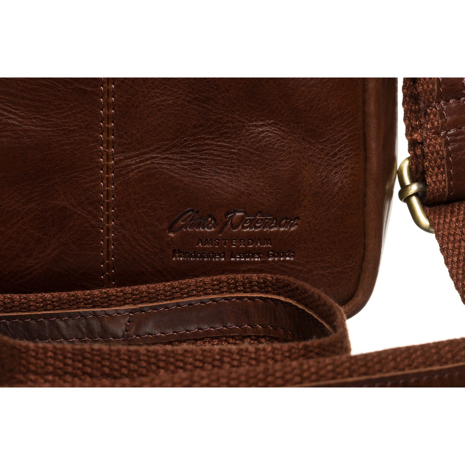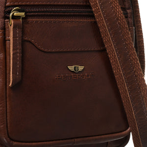 Peterson vīriešu rokassoma, izgatavota no īstas ādas, brūnā krāsā, ideāli piemērota ikdienas lietošanai.