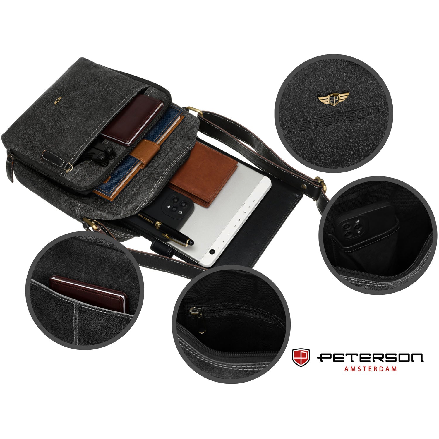 Melnā vīriešu rokassoma Peterson, kas izgatavota no īstas ādas, ir lieliska izvēle ikdienas lietošanai. Šī rokassoma ir ne tikai stilīga, bet arī praktiska.