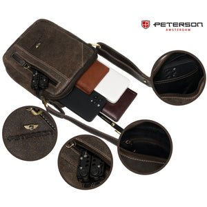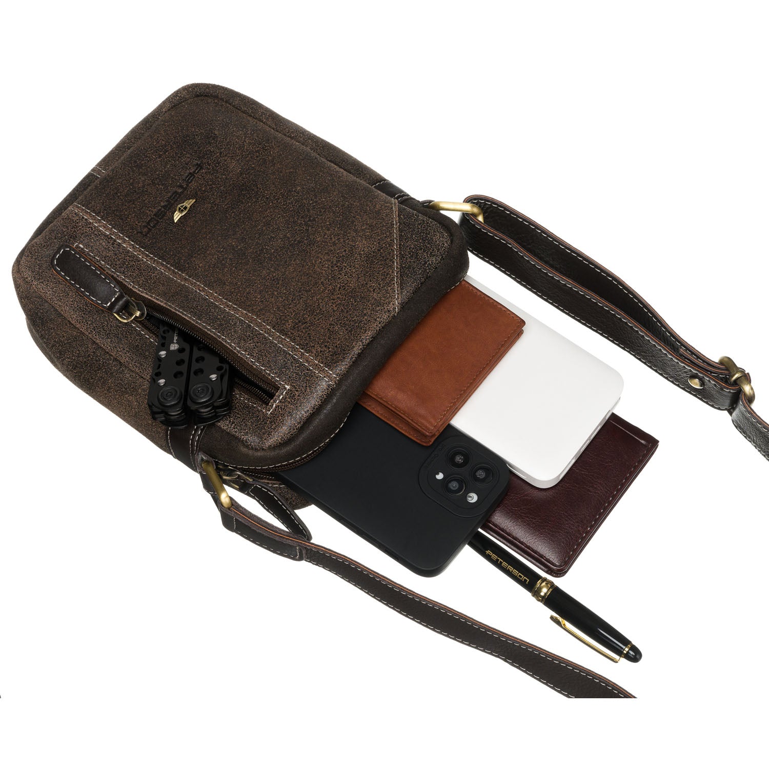 Vīriešu rokassoma Peterson, kas izgatavota no augstas kvalitātes īstas ādas, ir lieliska izvēle ikdienas lietošanai. Šo brūno rokassomu ir viegli kombinēt ar dažādiem stila risinājumiem.