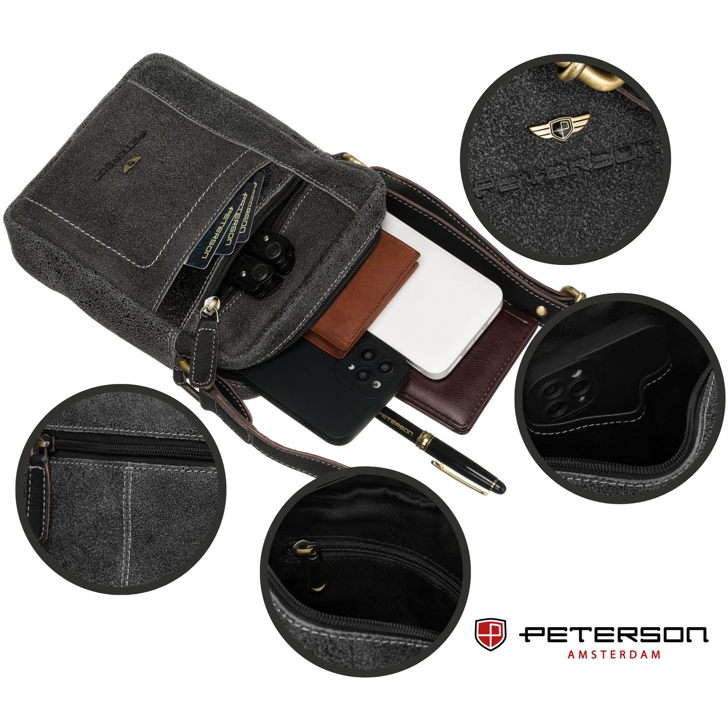 Melnā vīriešu Peterson rokassoma, kas izgatavota no īstas ādas, ir stilīga un praktiska izvēle ikdienas lietošanai. Šī rokassoma ir ideāli piemērota tiem, kas novērtē kvalitāti un funkcionalitāti.