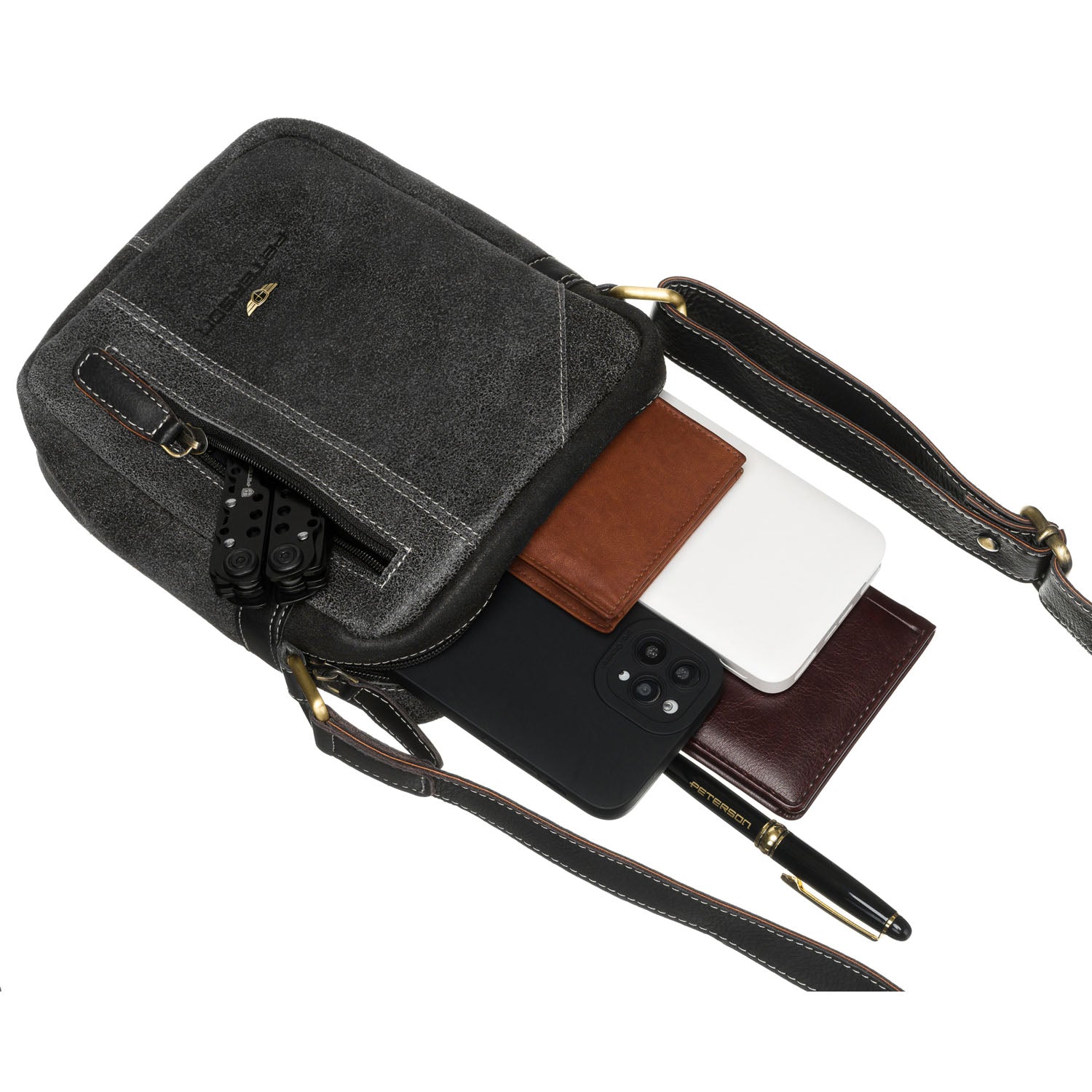 Melnā vīriešu rokassoma Peterson, kas izgatavota no īstas ādas, ir lieliska izvēle ikdienas lietošanai, apvienojot stilu un funkcionalitāti.