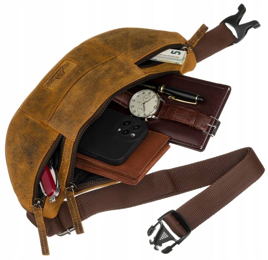 Šī jostas soma ir lieliska izvēle vīriešiem, kuri novērtē kvalitāti un funkcionalitāti. Izgatavota no īstas ādas, tā ir izturīga un ar elegantu izskatu.