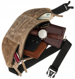 Šī jostas soma ir izgatavota no augstas kvalitātes īstas ādas, kas nodrošina izturību un stilīgu izskatu. Bēšā krāsa piešķir tai eleganci un daudzpusību, padarot somu ideāli piemērotu dažādiem gadījumiem.