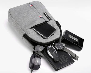 Šī kompaktā sporta mugursoma ir lieliska izvēle aktīviem vīriešiem, kas meklē komfortu un funkcionalitāti. Mugursomu var nēsāt uz pleca ar regulējamu siksnu, un tās dizains ļauj to ērti pārvietot uz priekšu, sāniem vai aizmuguri, lai ātri piekļūtu tās saturam.