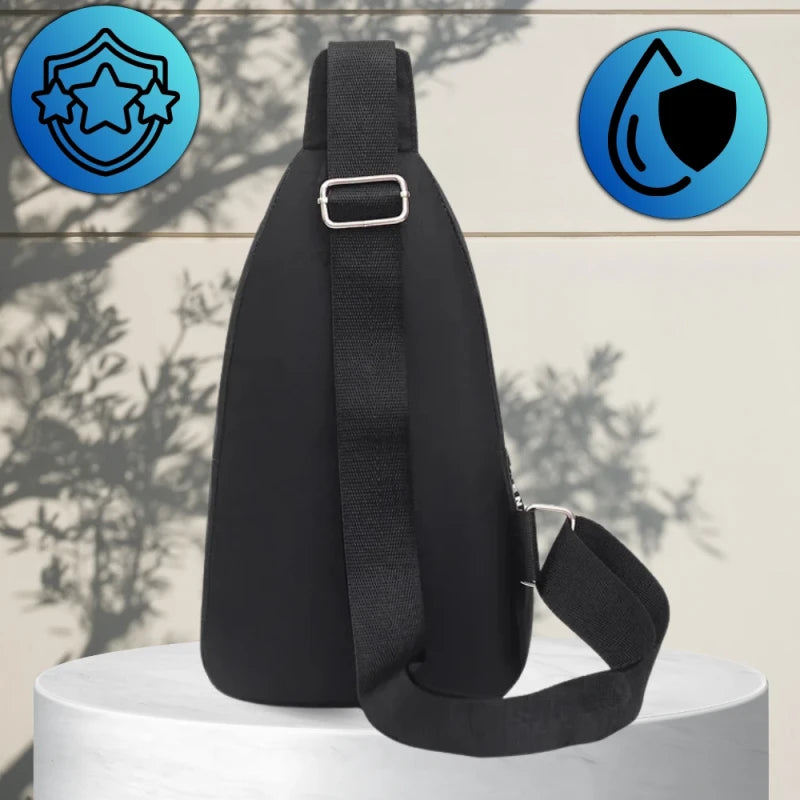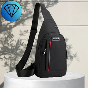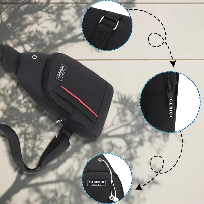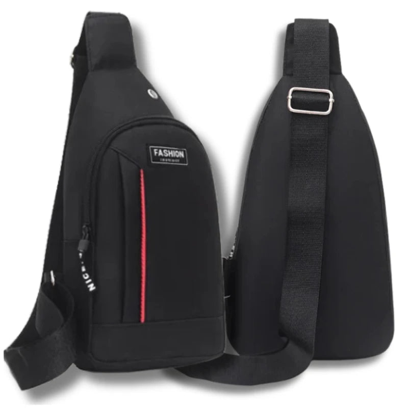 Šī sporta mugursoma ir lieliska izvēle aktīviem vīriešiem, kas meklē komfortu un funkcionalitāti. Mugursomu var nēsāt pār plecu ar regulējamu siksnu, un tās pozīciju var viegli mainīt - nēsāt priekšpusē, aizmugurē vai sānos, lai ērti piekļūtu saturam.