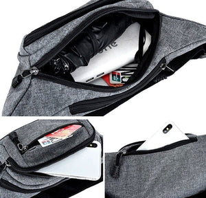 Šī vīriešu jostas soma ir praktiska un stilīga izvēle, ko var nēsāt ap vidukli, uz gurniem vai uz muguras.