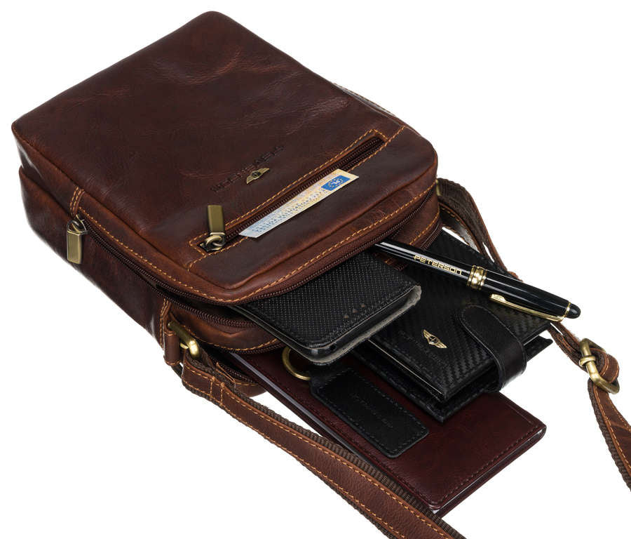 Šī Peterson vīriešu rokassoma ir izgatavota no augstas kvalitātes īstas ādas, kas tai piešķir nelielu spīdumu un nodrošina izturību. Rokassoma ir lieliska izvēle tiem, kas novērtē kvalitāti un stilu.