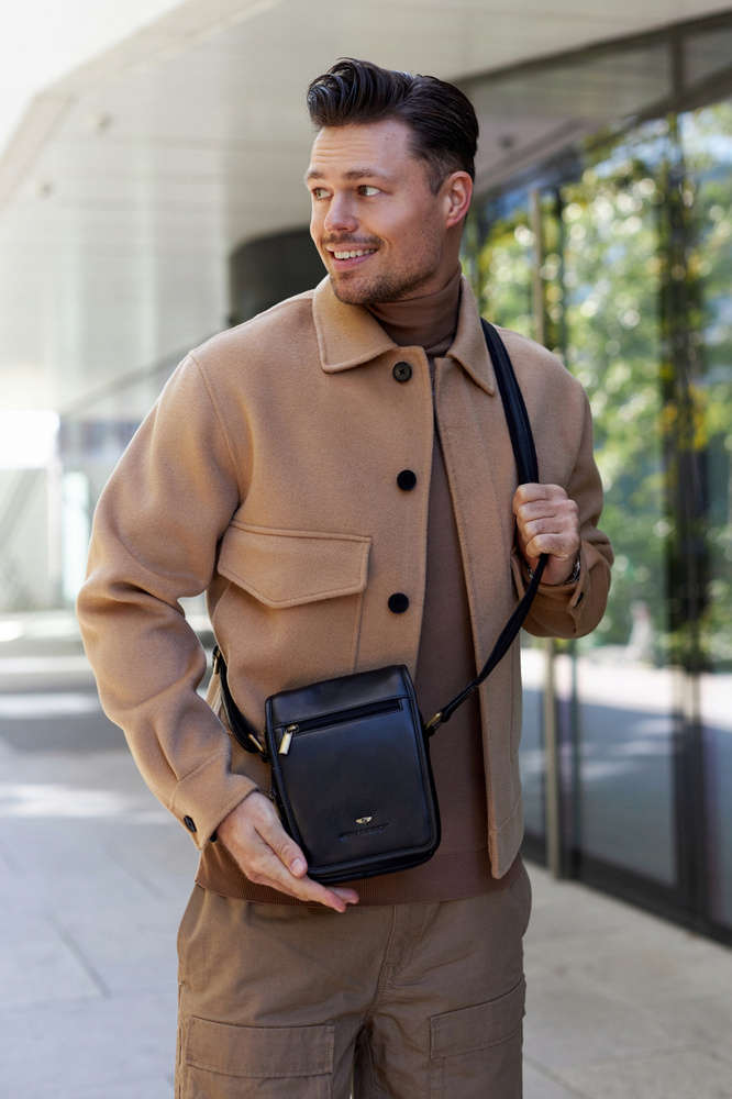 Vīriešu ādas rokassoma - Peterson N50, melna