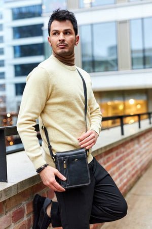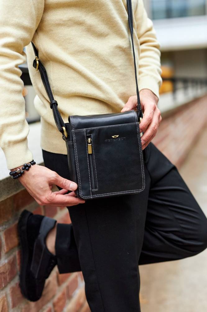 Šī vīriešu rokassoma ir lieliska izvēle tiem, kas novērtē kvalitāti un praktiskumu. Izgatavota no īstas ādas, tā nodrošina izturību un stilīgu izskatu. Melnā krāsa nodrošina daudzpusību, un kompaktais izmērs ļauj ērti pārnēsāt ikdienas priekšmetus.